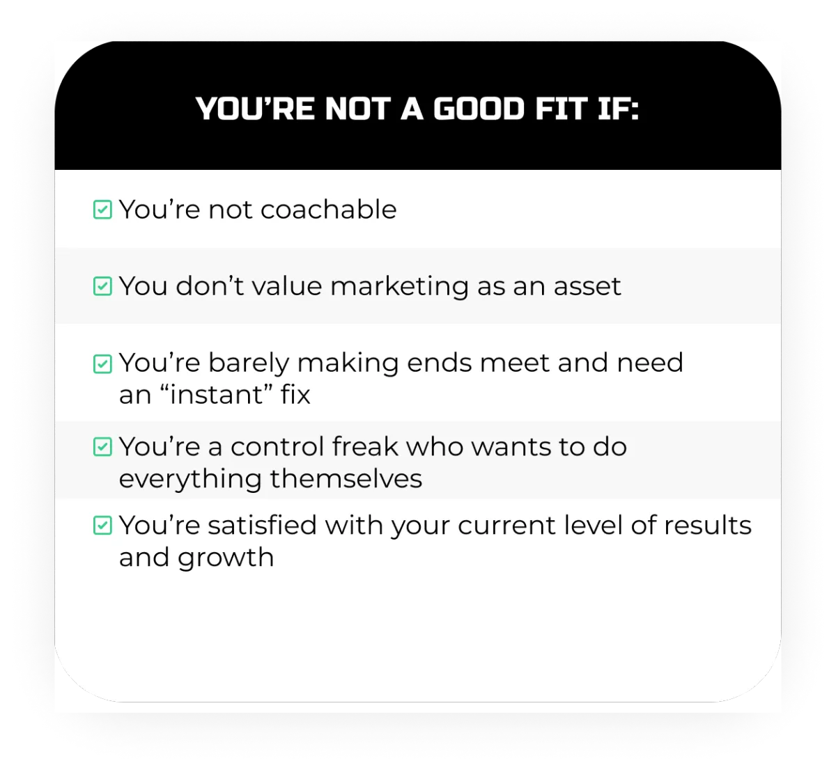 Which means your Zone Of Genius isn’t found tweaking the back-end of a Facebook Ad for hours on end. It’s strategic, high-leverage actions that help you accelerate operations and overdeliver for clients while building a world-class team.