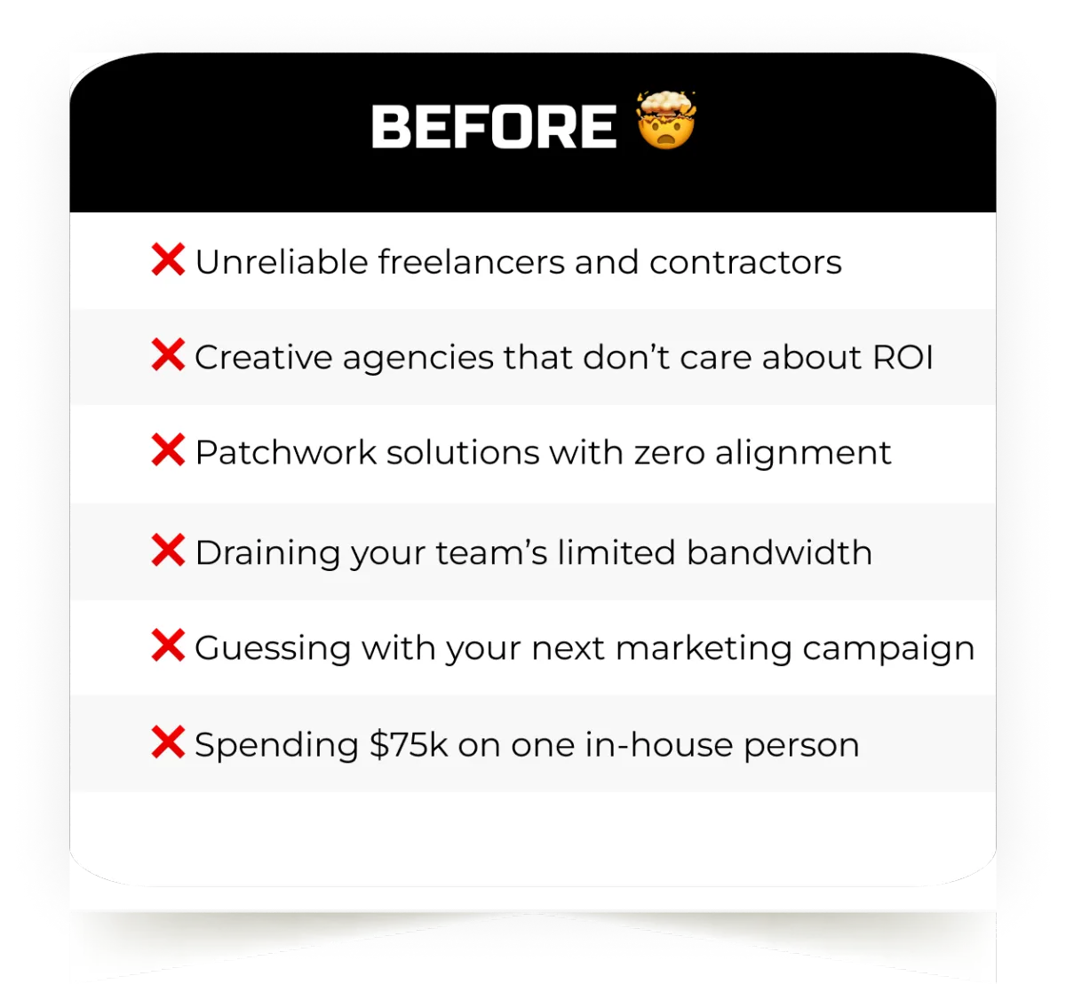 Stop wasting time with unreliable freelancers or "creative" agencies who don’t understand the DNA of entrepreneurs.