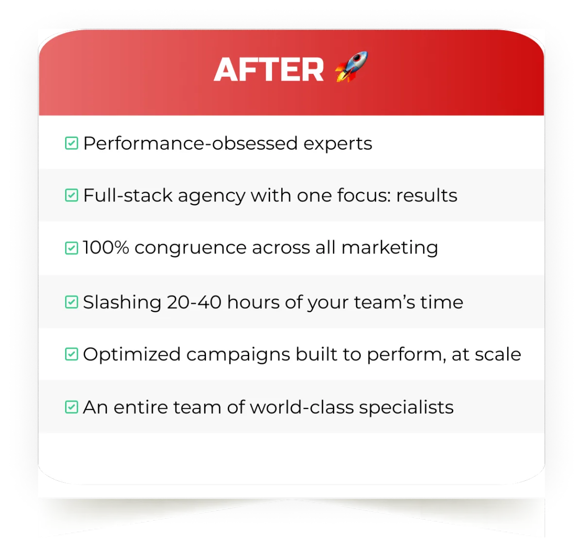 ❌ You contract a bunch of freelancers who aren’t on the same page and end up with patchwork funnels