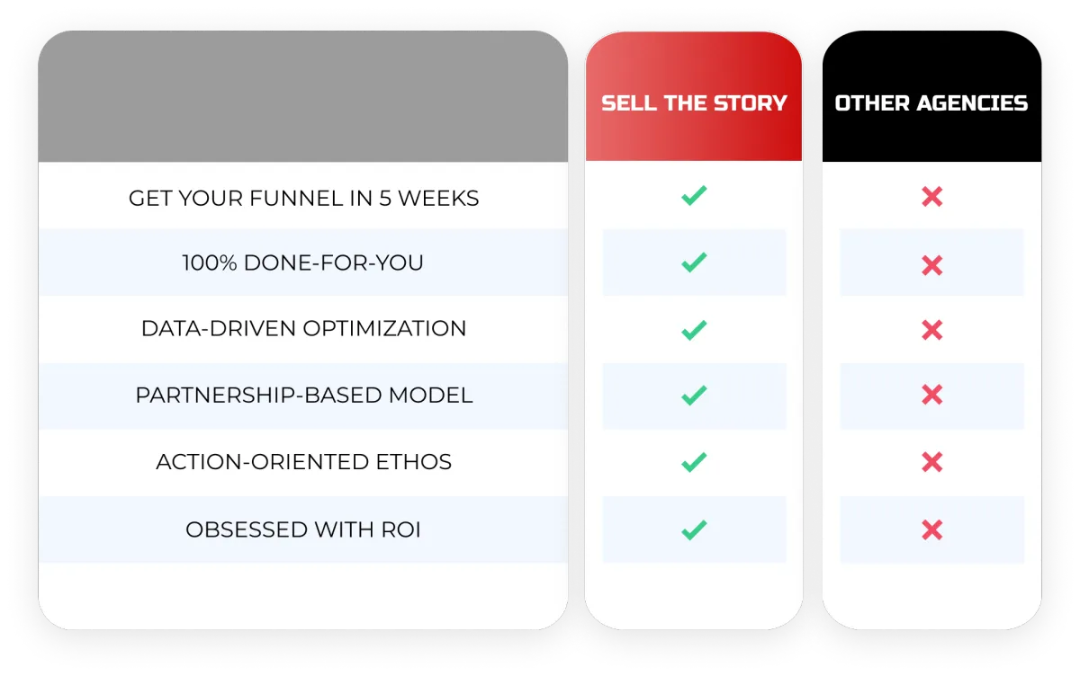 9 out of 10 purchasing decisions aren’t logical, they’re emotional and rationalized later. Which means selling your story isn’t optional. Unless you want to fit in with everyone else. Instead, we get clear on your story and why it matters to your prospect in a life-or-death manner.